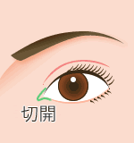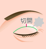 瞼の上をメスで切開し縫合します。縫合した部分が二重のラインとなり二重瞼をつくります。埋没法に比べて二重のラインがくっきりし、年月を重ねても取れません。